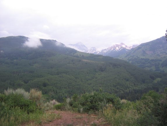 A look southeast, to the Maroon Bells (14ers which I plan to hike in Aug)...