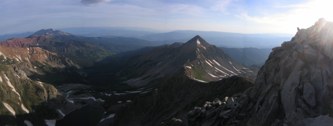 A panaramic view from this point, with Capitol on the right (scroll to the right). Snowmass Mountain (14092') is in the center of this pic...