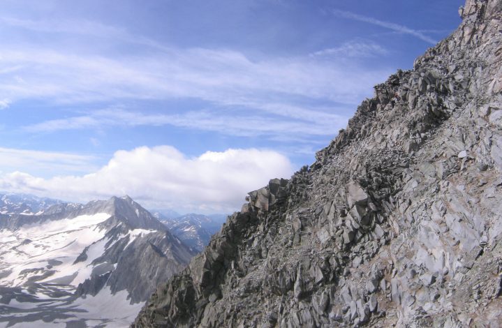The knife edge was thrilling, but not that technically tough. Some people use ropes to cross it, and it takes them 30 minutes. Someone said that if you don't feel confident to do it without ropes, then you shouldn't be doing it at all, and I agree. As long as you don't let the sheer steep walls on each side get to you, it's pretty straight forward. Everyone says that if you were to fall off the knife edge, it would lead to a certain and definitive death. It is a steep surface, and if you lose ALL your holds, then gravity is gonna make it near impossible to give you enough friction to stop you from tumbling down several hundred feet of rock. However I never felt at all uncomfortable, and couldn't feel any scenario that would lead to that end. However, if the weather was wet, icy, or stormy, this would be the last place I'd want to be.