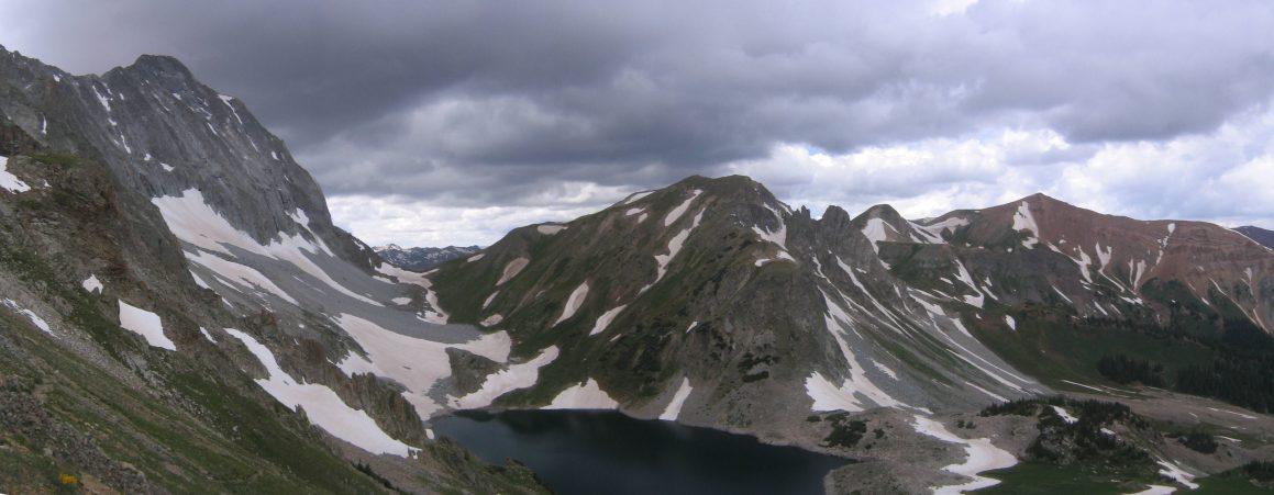 A look towards Capitol Peak (and lake), coming down the slope. Those clouds sure look bad...