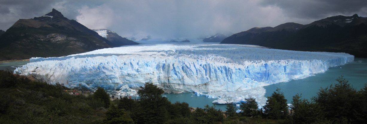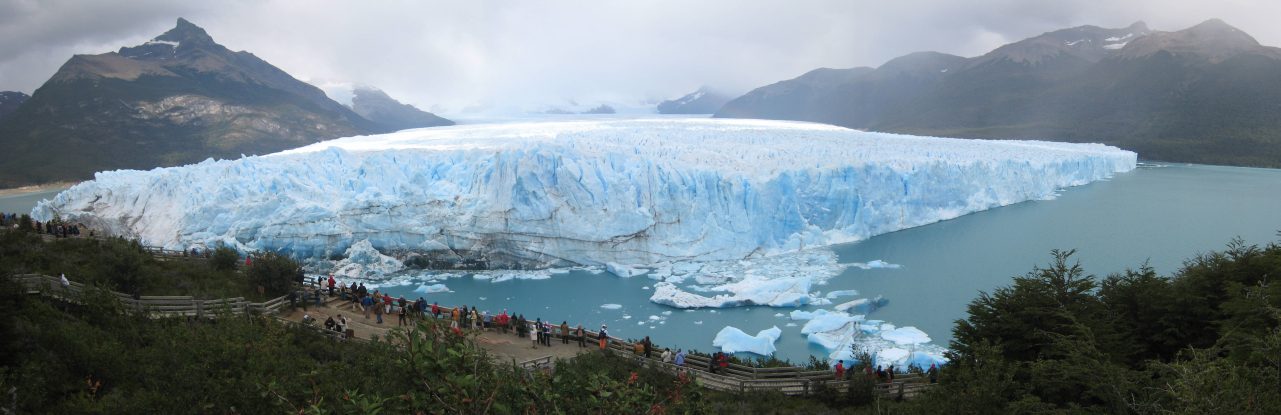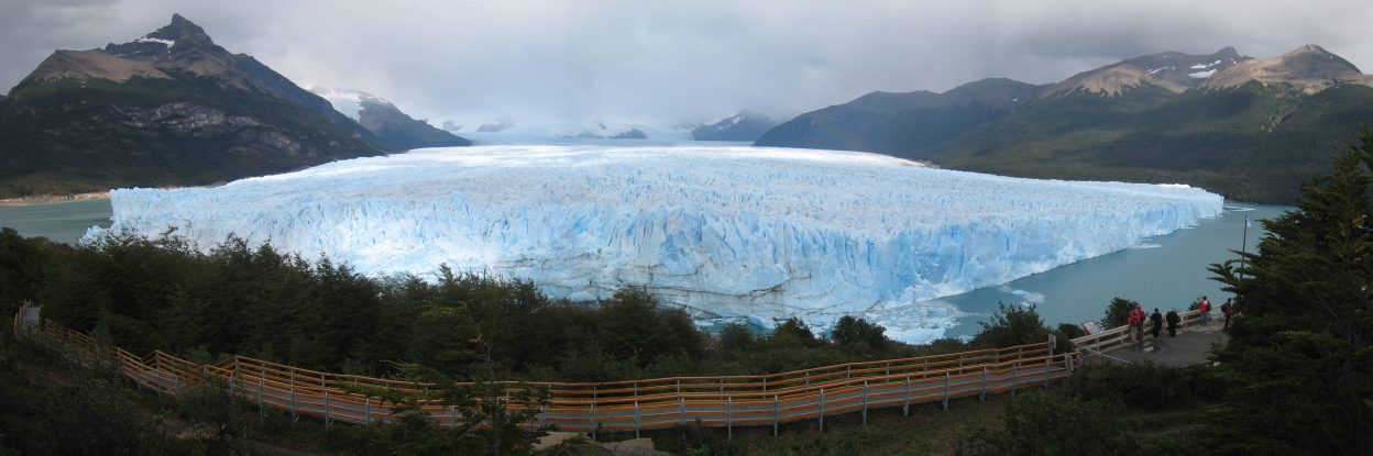 The complete view of the glacier, and the sidewalk leading down to the viewpoints...