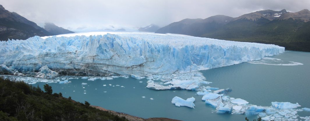 The view of Moreno Glacier from the closest viewpoint. Plenty of ice chunks floating in the water...