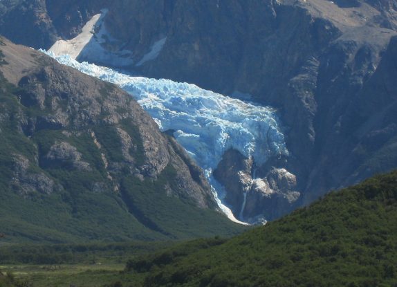 A look at the Piedras Blancas glacier. Notice the waterfall coming down from the upper part. This glacier looked extremely blue...