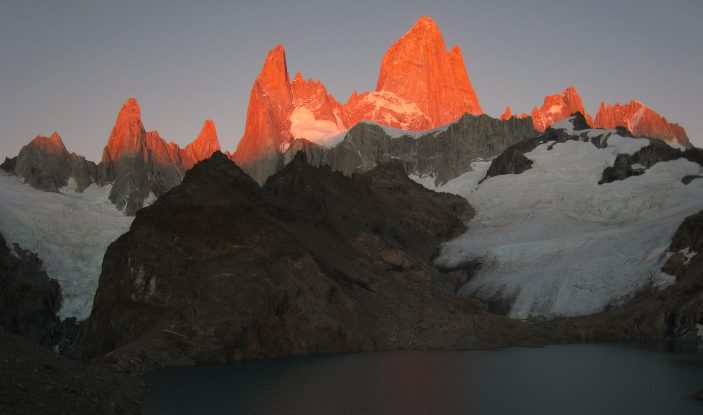 The first signs of red on the tips of Fitzroy. Lots of pics would follow...