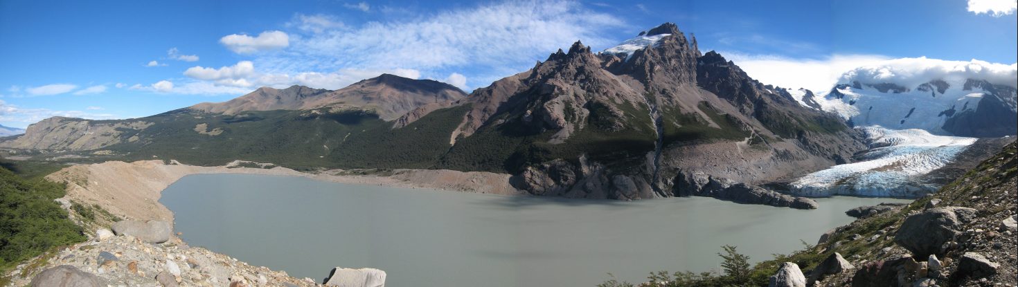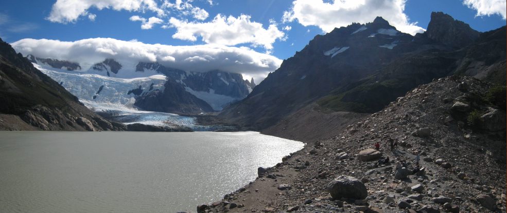 A final view from camp before leaving this awesome site. Piedras Blancas glacier, which we hiked to yesterday, appears on the left of Wendy...
