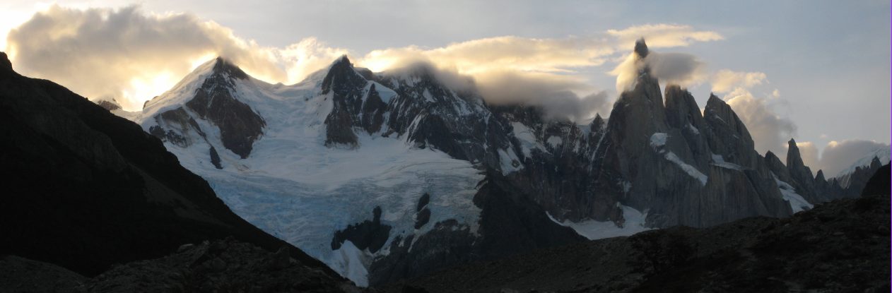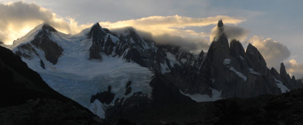 More views of Cerro Torre. As the sun got lower, it lit up the clouds surrounding the peak...