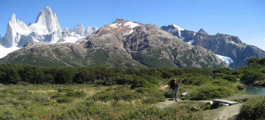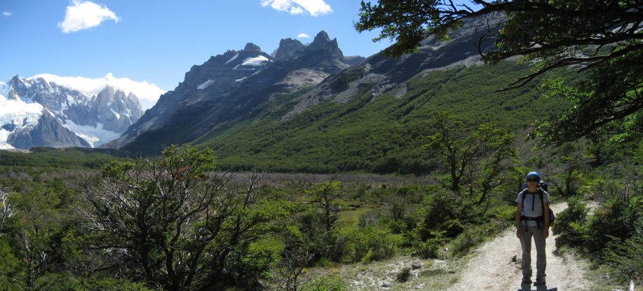 Wendy stands next to the trail we will take to Cerro Torre. Mighty Fitzroy is so impressive...