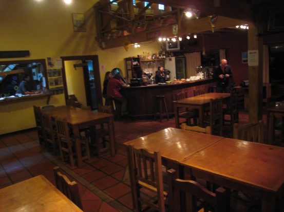 The shops that line the walkway from the bus station are closed. Back in the lobby of our El Calafate hostel...