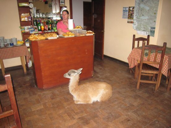 On the bus ride back, we stop at a different cafe (rest area) this time. Animals are everywhere at this much more scenic location. There's roosters and chicks walking around the stone driveway, a guanaco that walks INTO the cafe, and sits down in front of the counter, and I see a small cow trying to make it's way in a side door near the bathrooms. It's an entertaining stop, even though it broke my sleep.