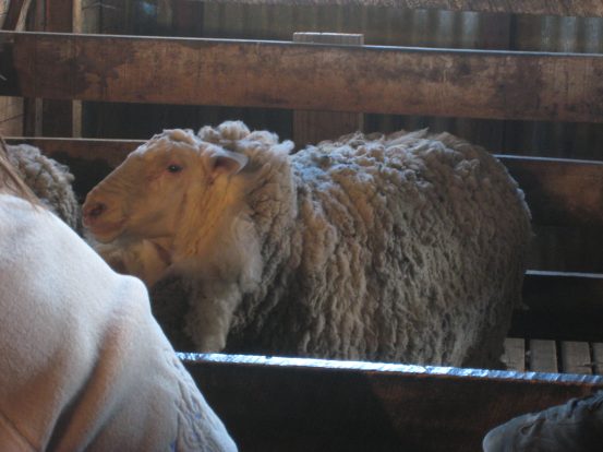 Next they lead us into an adjacent barn for the sheep shearing. It will be a full sheep shearing! The guide speaks in Spanish, then an abbreviated English version. A Chinese guy in the group speaks up, and asks the guide to pause while he translates it into Mandarin for a Chinese group of people. This takes awhile for all the info be to conveyed to the masses. There are surprisingly few English speaking visitors here, maybe cause it's an older crowd. A professional sheep shearer comes out, leading a sheep from the nearby pen. He then grabs it and muscles it around, absoluting manhandling it in a display of enormous strength, spinning the sheep into odd positions, shearing the wool away in an amazingly methodical fashion such that after 5-6 minutes, there is one continuous rug of wool on the floor, and a shaved sheep. No wonder they say sheep shearers only last til they are in their late 30s, and often have back problems later in life. They pass around some of the wool, and we keep a small piece. Before leading us outside, they bring in several varieties of sheep, including a Merino sheep, explaining how some sheep have great tasting meat, and some have high quality wool, so they raise many varieties. They also have a hybrid that has a bit of both strengths.