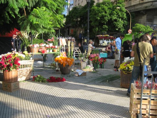 Buenos Aires has a Washington Monument style structure too. A flower market is being setup along our walk this morning...