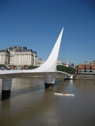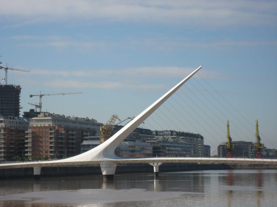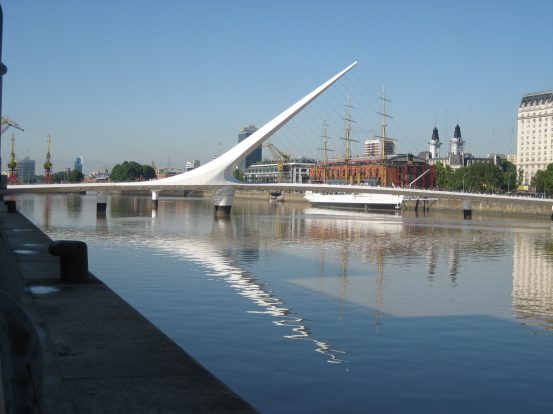 Puerto Madero is a long riverwalk not too far from our hostel. The sun is hot, and we seek shade at every opportunity. The water is a solid brown, as is all the water in the sea next to Buenos Aires. There is a cool white bridge spanning the river which we cross and investigate.