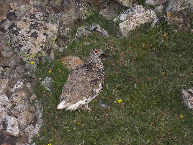 A look up towards the false summit of Democrat on the left. The grassy terrain would give way to rocks shortly. Ran into a couple of ptarmigan's on the way...