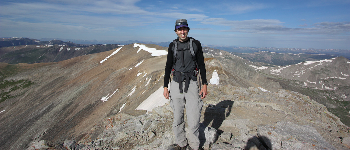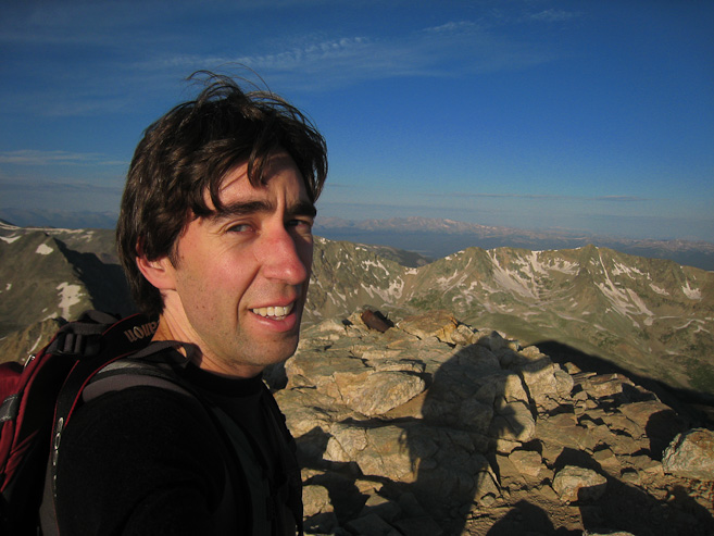 Mt Democrat (14,148'), Mt Cameron (14,238'), Mt Lincoln (14,288'), and Mt Bross (14,177'), can all be bagged on a 7.25 mile, 3700' gain hike. Since Wendy had an ultimate frisbee tourney in Breckenridge this past weekend, I decided to join in on a condo with some of her teammates, taking advantage of the nearby location of these peaks. It was great sleeping in a comfy bed the night before a 14er, and sleeping in til 4:30am (yes, that's sleeping in for 14ers for me), with just a 45 minute drive to the Kite Lake trailhead.