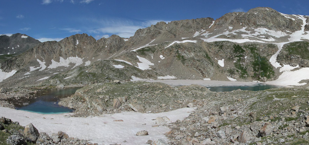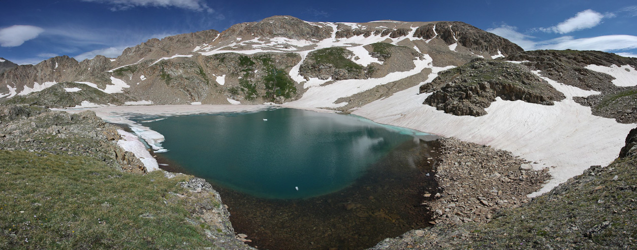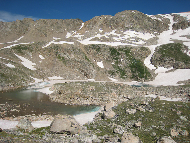 The view was so good, I had to go back to where I had left my pack, and bring back my DSLR. Mt Democrat is the big peak to the right of center, though I don't think I could see this lake from the summit...