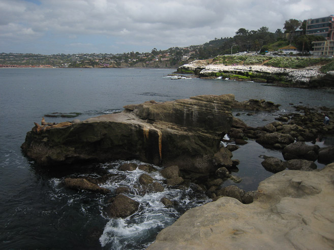 Traffic was smooth, and we hit the outskirts of S.D. in a couple hours. La Jolla Cove, just north of the city, was our first destination. I noticed signs for Torrey Pines, and thought of Tiger Woods winning the PGA tour with an injured leg. Since it was just a mile away, we made a visit to the lodge and golf shop. If I was a golfer, I'm sure I would have been more excited. On to the ritzy coastal town of La Jolla...