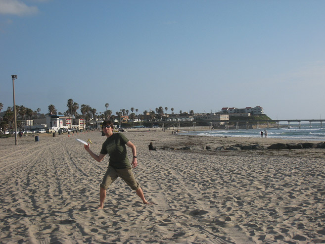 Even though the temp barely broke 60 degrees today, it was still warm enough under the sun to dip our toes in the ocean. We followed with some toss on the beach (I'm wearing my new Wires in the Walls shirt)...