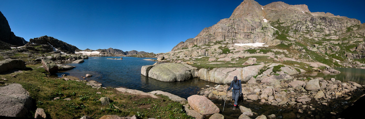 Tom makes his way to a big rock along the lake where we took a rest before the final 1600' descent to camp...