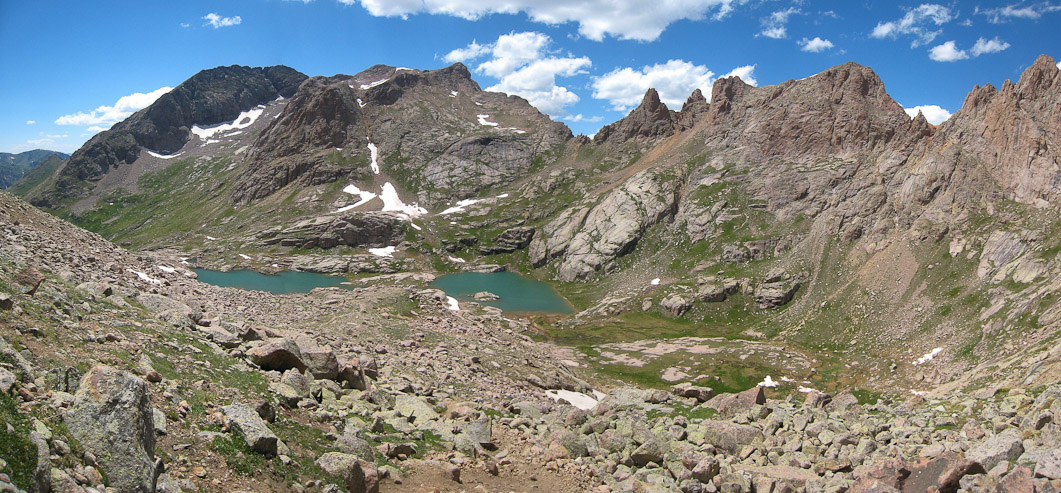 I soon realized sulking wasn't worthy of my time in this spectacular environment, so I took in the views, and marveled at the perfect weather that continued into the afternoon. Twin Lakes, with Eolus just visible in the center of the pic...
