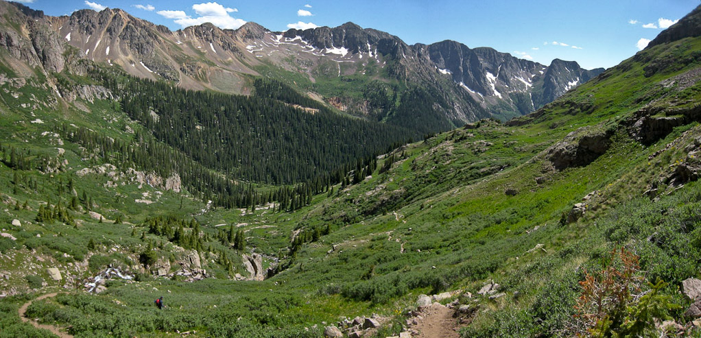 Heading down Eolus's climbers trail, back to Twin Lakes (around the bend)...
