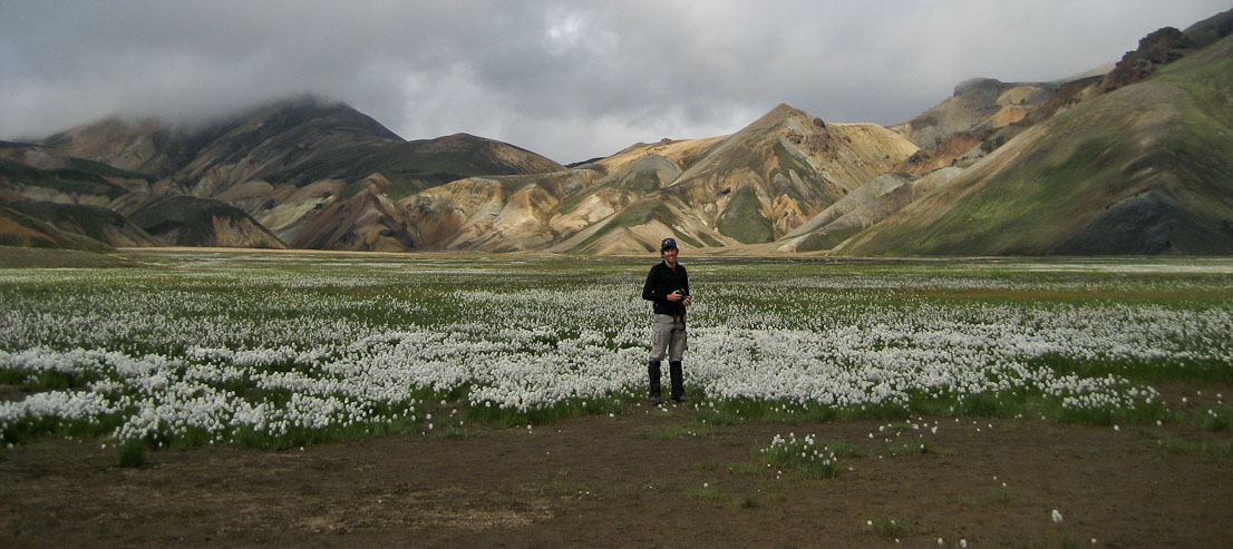 Me next to some veins of "skittle-green" moss...
