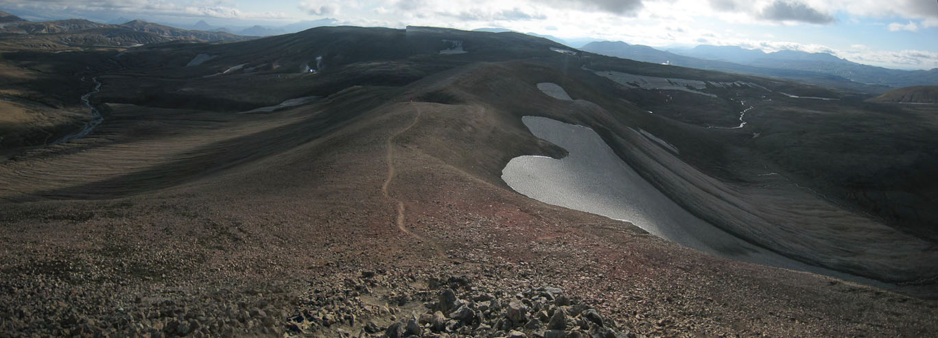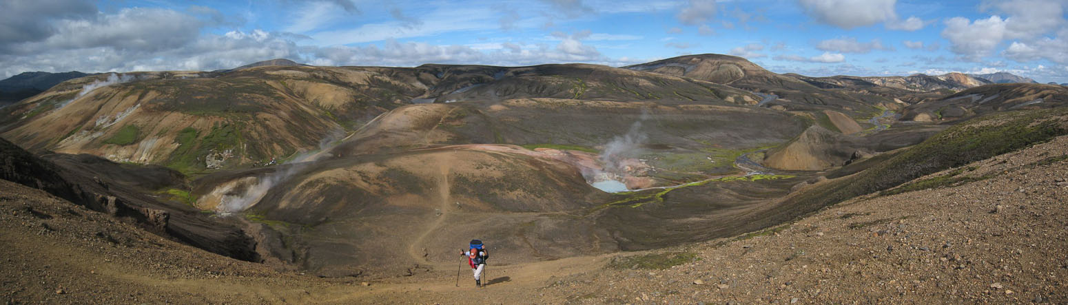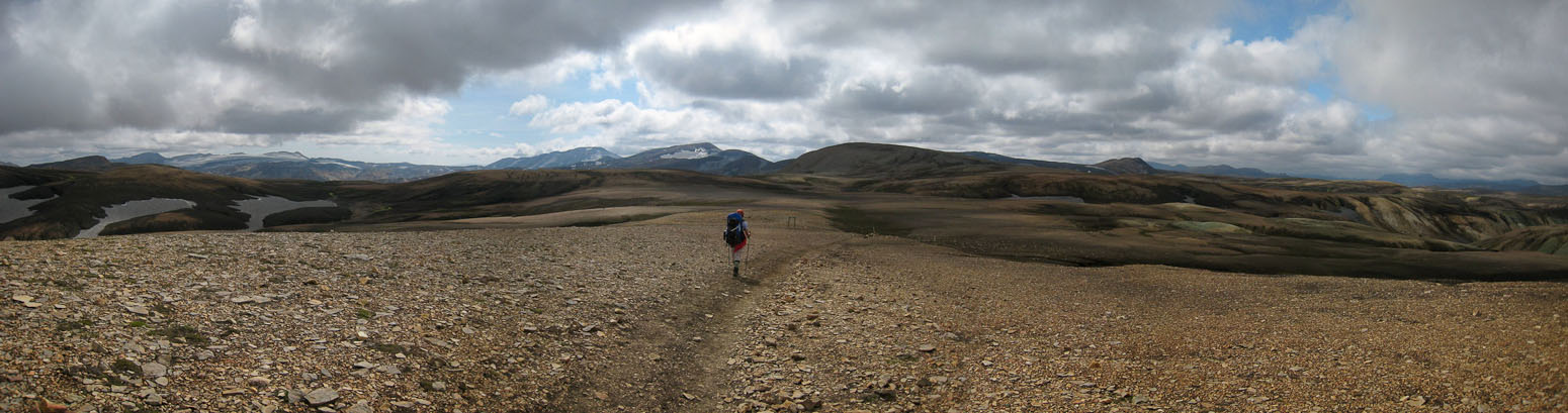 A wide look back as we near the top of the mountains. Bye-bye Landmannlaugar!