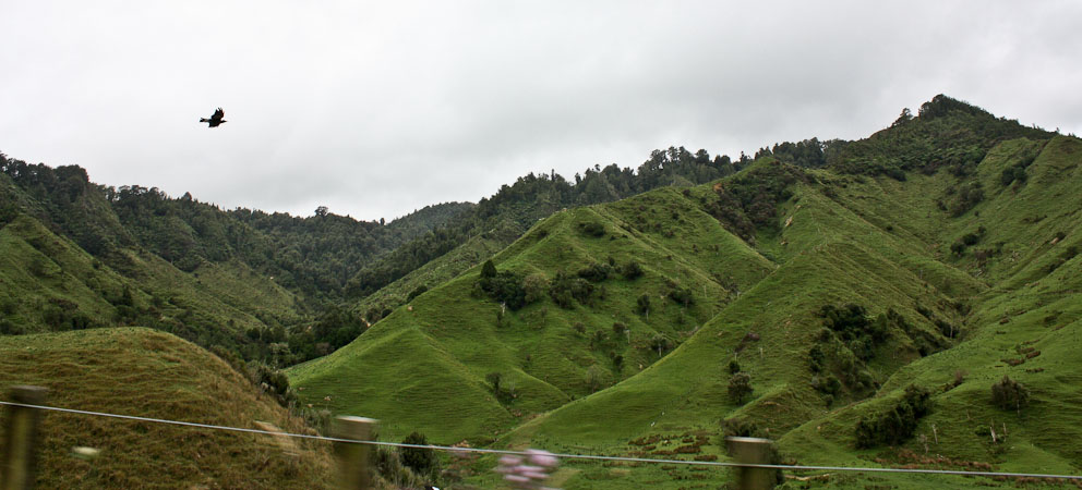 It's raining! No views of the Mt Taranaki/Egmont volcano today. In fact, gonna skip our planned hike altogether, and just head to our next hostel, which is a 3-4 hr drive I think. Checked out of the hostel ~9:30am this morning, and drove into town to see if the Canon store was open. They were, but didn't have lens cleaner (something I forgot to bring). No views during the drive to the North Egmont visitor center. The weather is supposed to start clearing up later in the afternoon, and should be great tomorrow. But not worth sticking around a day. We'll see more volcanoes in other places… I counted 14 rabbits outside the visitors center. Driving in NZ thoughts: At the start of each day, it takes some focus to make sure you start driving on the left side of the road. Maybe we'll try doing laundry at our hostel today, and doing the Tongrariro Crossing (big hike) tomorrow. Won't be many pics today...