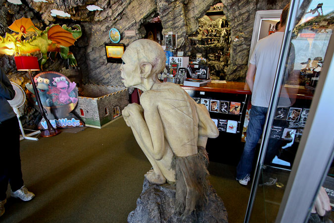 Wow, replica ears of Sam and Frodo, made by Weta! Gollum hangs out near the entrance-way...