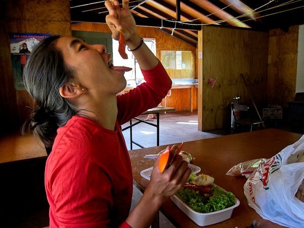 It was mostly shady and cool here. We meet the other hikers in our bunk room: 4 Aussie guys, and an older couple from NZ.