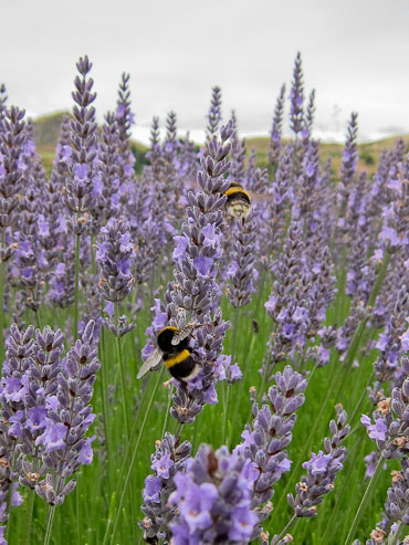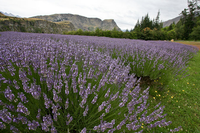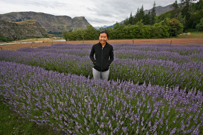 Cloudy and rainy across most of NZ today, and we drove ourselves right into the thick of it at the base of NZ's highest peak, Mt Cook. After lunch, I bought some cheap flip flops for $4, since my pair broke when I slipped on a steep wet slope outside of the hut on the 1st night of the Rees Dart track. Then we drove to the Lakefront YHA and canceled our booking after the Routeborn, since we'll stay in Te Anau 2 nights instead. There was a bit of a scare for a few minutes when their calendar had a mis-print, and it looked like I had allocated 1 too many days in our agenda for the week. Fortunately all is well. We left town ~2pm after filling up the tank, and stopped at a Lavender farm in Arrowtown, ~10 minutes outside of Queenstown. Wendy is a major lavender fan. The small farm had a shop that was closed, but the owner soon came out and gave Wendy a personal tour of the place. She later bought some essential oils and a soap, and we walked through the purple, bee-filled, lavender field. Quite peaceful and scenic.