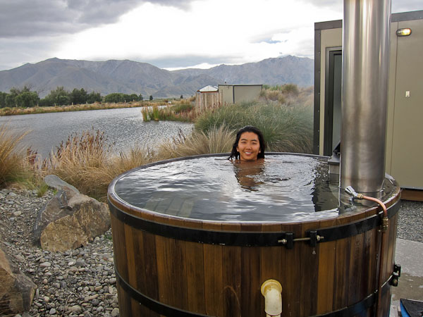 Then we drove into town, where we opted to try a hot spa. $60NZ for unlimited private spa. Pure fresh water, great views, with a wood burning heater. Spent ~80 minutes. Half way into the bath, the sun came out.