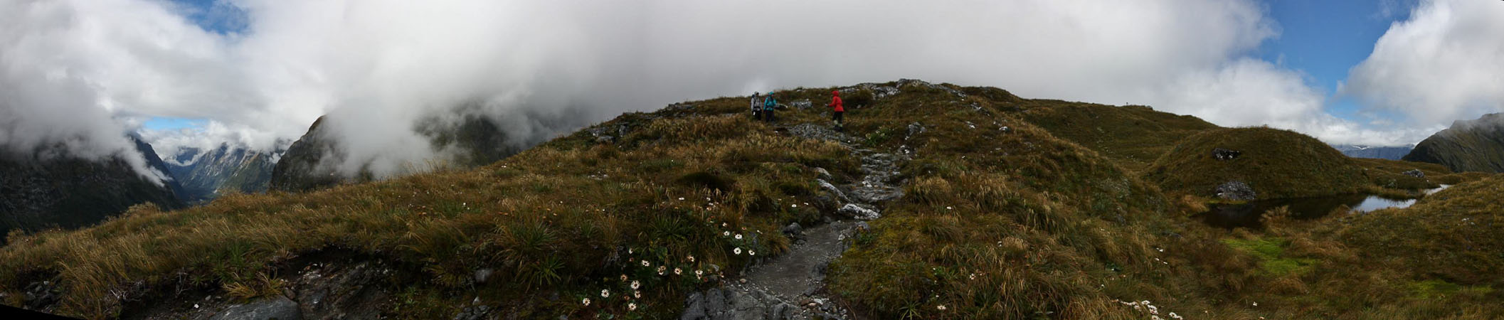 Wendy and I atop Mackinnon Pass. Rebecca and Kurt also returned for the view. We were all celebratory of the clearing skies, to behold the prime views of the majestic Milford...