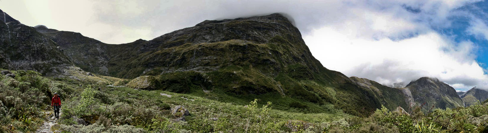 We all decide to hike back to mackinnon Pass, to experience the height of the Milford Track with (hopefully) a clear view. Leaving our packs in Pass Shelter, makes the walk easier. We are all excited at the thought of resurrecting our highly anticipated dramatic view from the most prestigious hike in NZ.