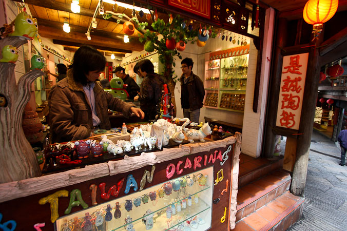 At Ruifang, we took a bus to Jiufen, a scenic Japanese-influenced mountain town with views to the ocean, and a narrow street full of vendors, and Japanese tea houses. We took our time walking the strip, taking into account food vendors we'd want to stop at later for lunch. There was an ocarina shop where I bought a small wind instrument, just like in the Zelda game.