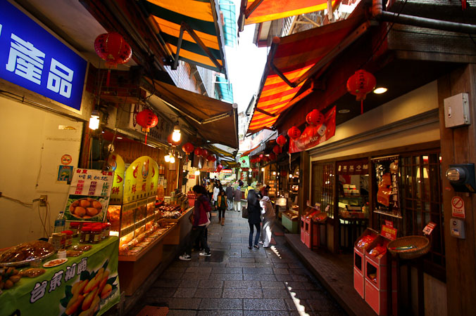 I zonked out while Wendy stayed up taking care of laundry last night. Laundry is still damp after two runs through the dryer. We were up at 7:20am to get an early start on the day. Breakfast had a new spread, including an eggplant dish. Drank lots of soymilk. Irene found out there is free wifi in the lounge on our floor! It was right under our noses the whole time, but we didn't know how to read the sign for the webkey. With all my camera gear packed, we took the MRT to Taipei Main Station to pick up the rail. There was a bit of a mystery going in, as to how we would be able to take a train to visit Juifen, then continue to Pingsi for the lantern festival tonight, and return, but Irene was able to figure it out with the attendant. We were hooked up with all our rail transportation for the big day. Upon reaching the platform, we hopped on the arriving train, and found seats for the ~60 minute ride. Almost time to get off now…