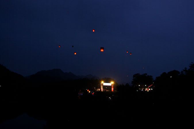 14er cards makes a visit to the Lanter Festival (in the tree). As we were about to leave, another mega lantern release occured...