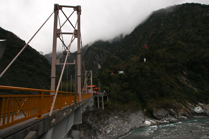 I dropped off the Changs at the bridge, parked the car, and met tham on the bridge. The stairs leading to the temple were closed, but it was pretty anyway.