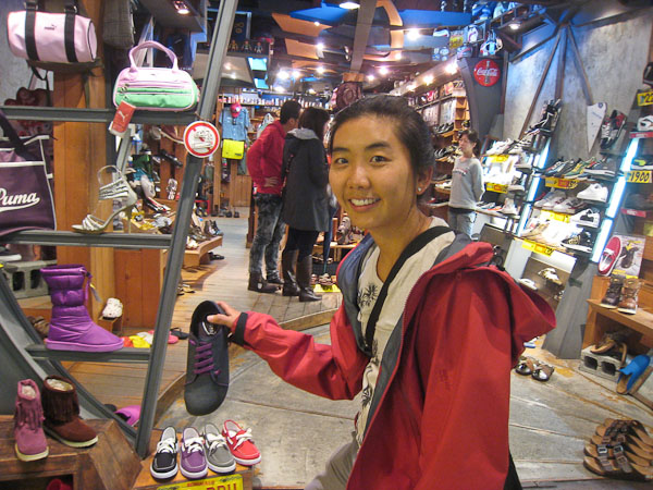 Wendy shows the shoes she bought. Betsy models the new prescription glasses she just bought...