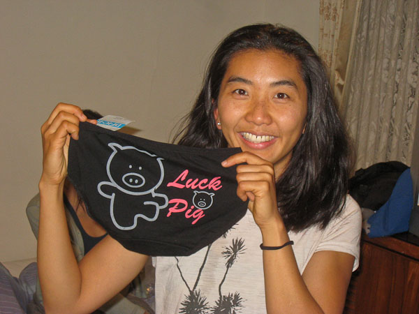 In the meantime, I was offered some peanuts, and found them to be quite excellent. They had purple skins, and came in 3 chambers standard. I even found a 4 chambered peanut! The owner said she once had a 5 chambered peanut! I liked them so much, they gave me the rest of their bag to take. Meanwhile, Wendy was in deep concentration, figuring out what tea set to buy. At long last, she bought a bunch of small cups, and we were set to go, when she noticed another cup, and bought that one too. Finally we left ~9:15pm. Garbage trucks here have ice cream truck chimes. Odd to hear the sweet melodies coming from a bulky heavy-duty truck with a man standing in the back waving to people on the street. The dog at the tea house howls to the tune of the truck...