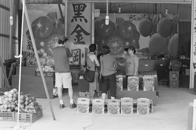 Next we walked down to a bubble tea shop, and large cups were just 10NT! Cheapest price yet, and it was one of the best tasting! We found a fruit stand, we bought some papayas, asian pears, dates, and bananas. The lady gave us some free sweet tomatoes too. Lastly, before leaving town, we found a street vendor selling fresh red bean, peanut butter, and creme filled cakes, for just 7NT (21 cents)! I tried one of each, they were great.