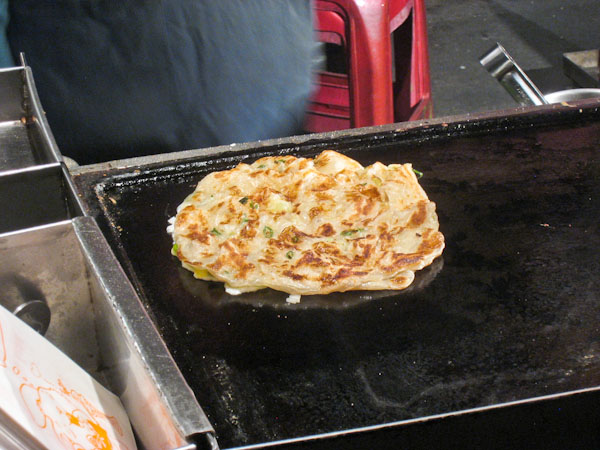 We walked towards a night market in the evening, stopping at a noodle soup restaurant, where the Changs had soup. I was saving myself for the night market, which turned out to be the best night market yet. This market had lots of high quality selections, and new food items, along with other decent merchandise. I got a egg/scallion pancake, honey mustard squid filled with a yellow rice thing, and a egg, cabbage, duck quiche thing. All very tasty! And each one was $2US or less. Wendy bought a bunch of 100NT stylin' tights to use for frisbee.