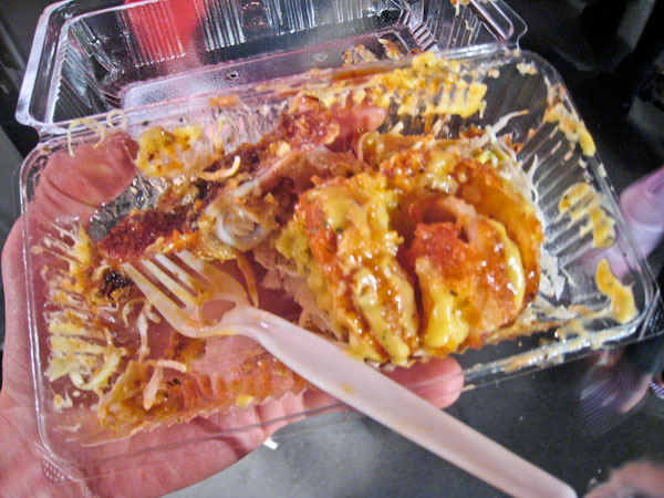 I bought one of the huge long fried calamari's in the 1st pic. We bought some fried "flying fish" to go...