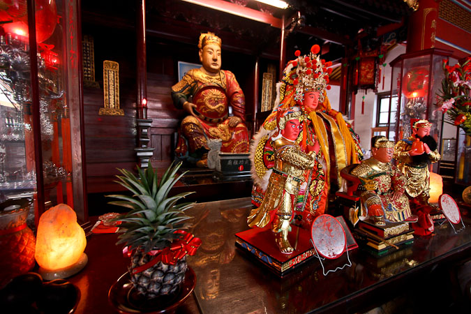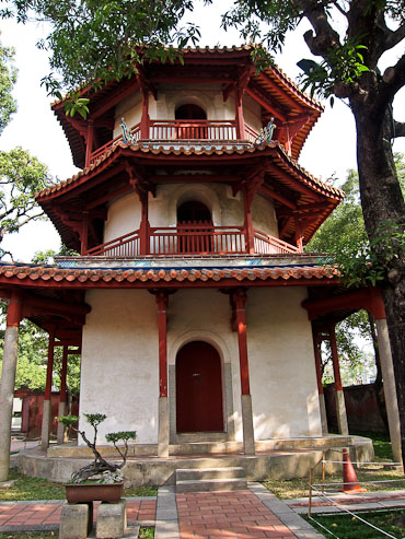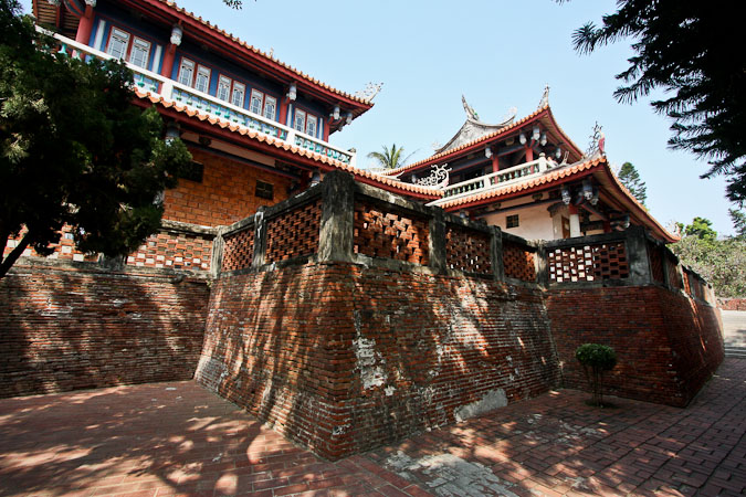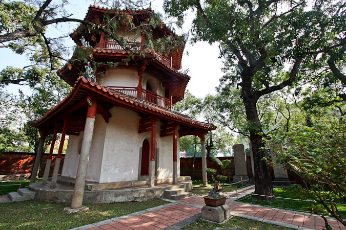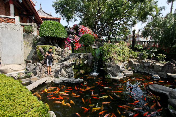 Next we walked across town to the Chiffen Tower, stopping a a smaller temple along the way. Tainan was settled by Dutch explorers in the 1600s, and this was a remnant of theirs. Admission was 50NT, but well worth the price, thanks to the scenic garden with fish pond (Wendy paid 10NT to feed the huge multi-colored goldfish), and large ornate temples.