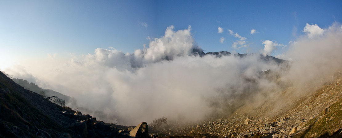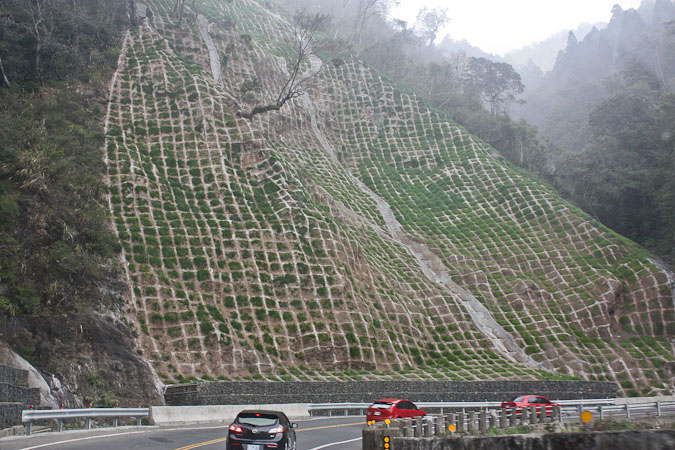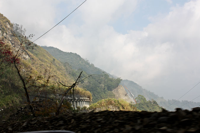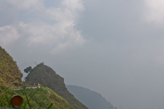 We successfully navigated ourselves out of the city, and in a couple hours were winding our way up the twisty roads to Alishan, one of the top mountain tourist locations in the country, famous for it's sunrises. When we left Tainan, a heavy haze had set in, just like yesterday, blocking off all views. The first half of our mountain drive was hazed over, and sometimes in fog, but slowly we climbed above the cloud, and were treated to blue sky and mountain views. The LOTR soundtrack on the CD player seemed to match the appropriate mood of the scenery and weather conditions...