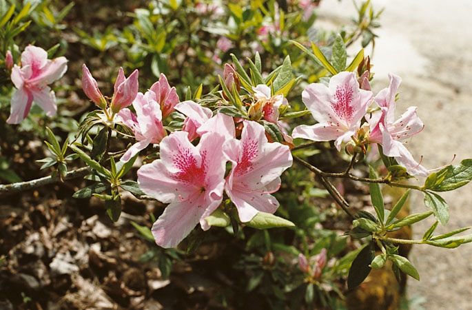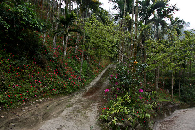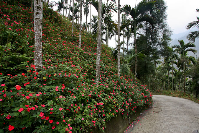 After a slightly uncomfortable crossing with an on coming vehicle, we reached another fork, where a truck happened to pass by. We flagged it down for directions. They said we were on the right track, and that the road was rough ahead, but passable by our car. Sounded like it would be no problem, since the road was already getting rough, and we were doing fine. We turned left, and drove down an even more narrow and windy scenic road, with tons of wild flowers, bamboo, and even a banana tree dressing the mountain side. We stopped often to take pics out the car window. Then grooves in the road started getting a bit deep, and I had to be careful we had enough clearance to pass the high mud in the center of the road. All my rough road experience in CO was keeping me sure we weren't getting in over our heads, though the thought of a car breakdown in these remote mountains did enter my head once or twice.