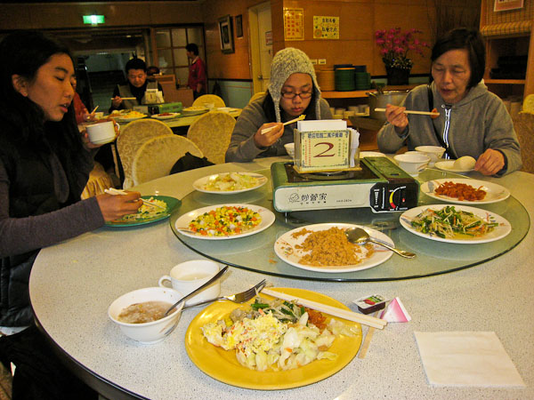 Back at the hotel, it was dinner time. We opted to try a 5 dish (plus soup) meal at the hotel's restaurant, for 640NT (~$21 covering 4 people). It was some of the best tofu I've had, and the most tender chicken (free range from their stock). Afterwards, they invited us to join in on tea. I also decided to try a Taiwan Beer (the only brand they make in the country), which was a bit better than Budweiser, and exceeded my extremely low expectations (just had to try it).