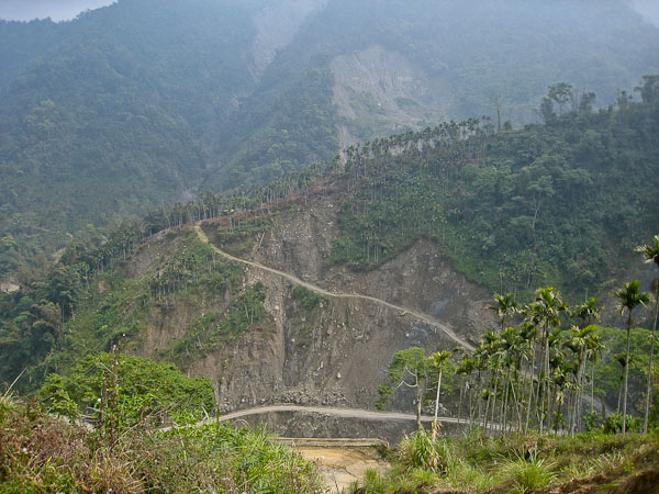 Fortunately traffic was light, as oncoming crossings would be rough in many spots. As we kept driving, the road deteriorated a bit more, passing more construction zones from recent typhoon washouts, but the signs kept directing us to Rueili, and we followed them. This mountain road was extremely scenic, and fairly easy to drive, compared to many CO roads I've encountered in a 2WD car while bagging 14ers. Still, this slow bumpy road, complete with large drop-offs on the sides, was quite "thrilling" to Betsy and Irene, who weren't sure what they were getting into. They were handling it great, and trusted our experience on these types of roads.