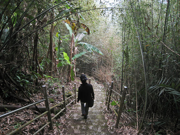 Then we walked from the homestead to the trailhead of our hike. We knew it was 1.5hrs one-way, but the surprise was a ~1000' drop down steep steps through a scenic bamboo forest. It was one LONG staircase.