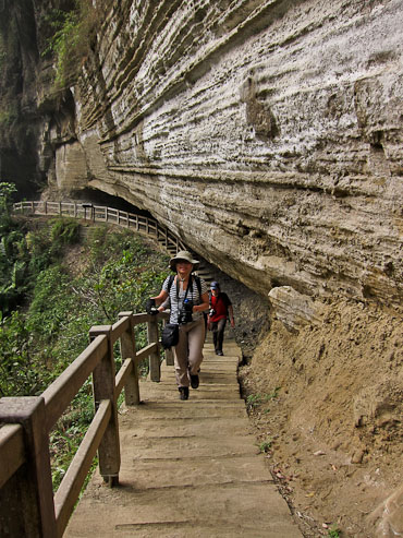At the bottom of the valley, we traversed up and around to the other side, passing impressive cave and rock formations, including the Bat Cave and Shallow Grotto.