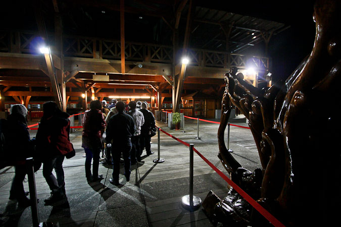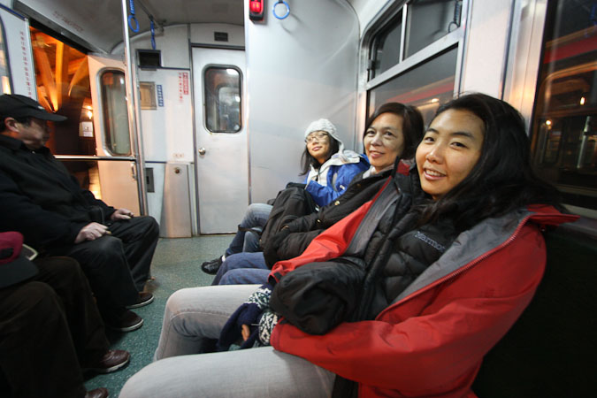 We hung out, but after no improvement in the skies, we returned to the train early to get some seats. Much less people on the return trip it seems, cause many people walk back to town (1hr walk), but our breakfast at the hostel is from 7-9am, so we need to get back ASAP to catch it.